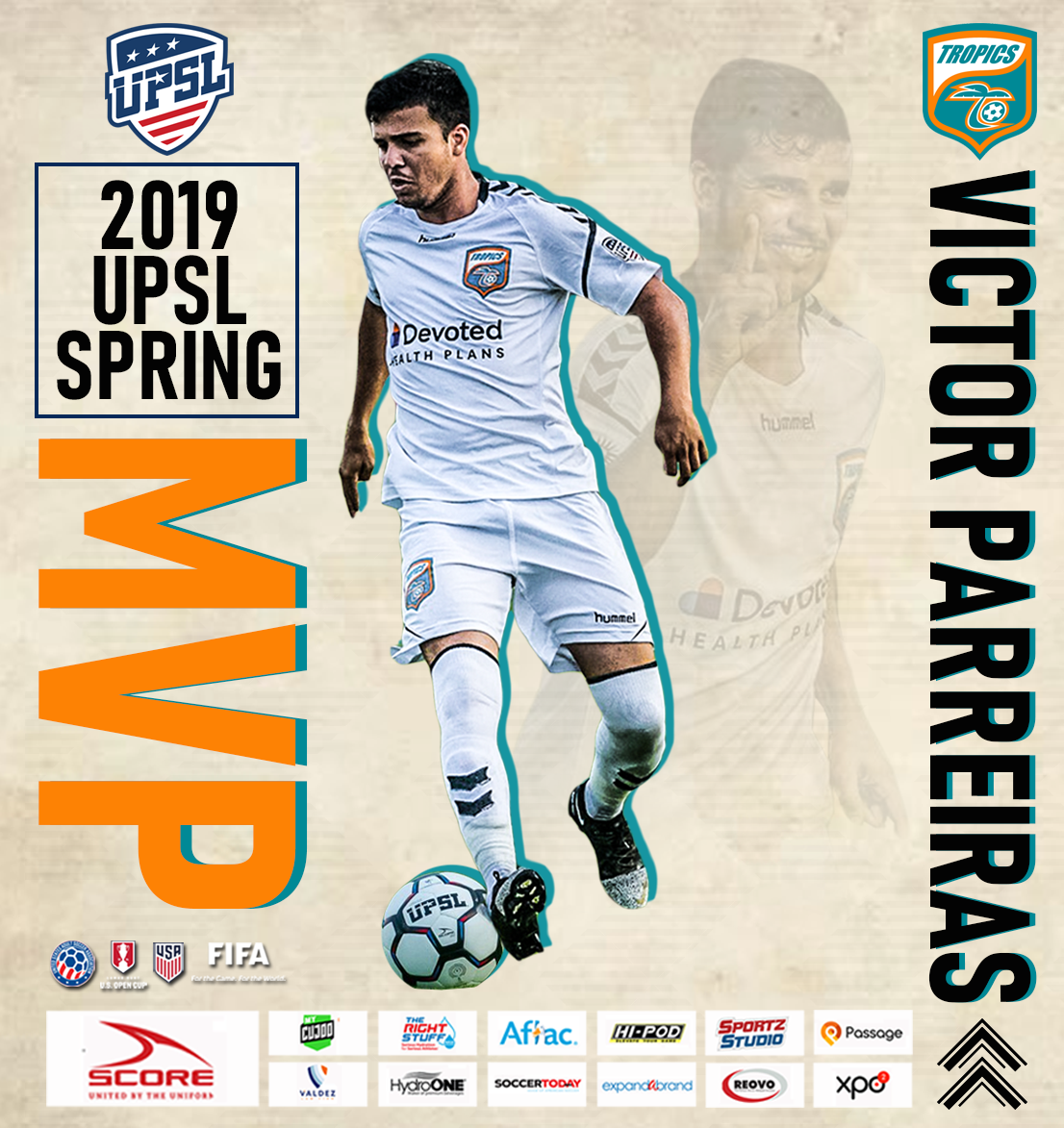 August 23, 2019 – Los Angeles – The United Premier Soccer League (UPSL) is pleased to announce Florida Tropics SC's Victor Parreiras has been named its 2019 Spring Season Most Valuable Player.